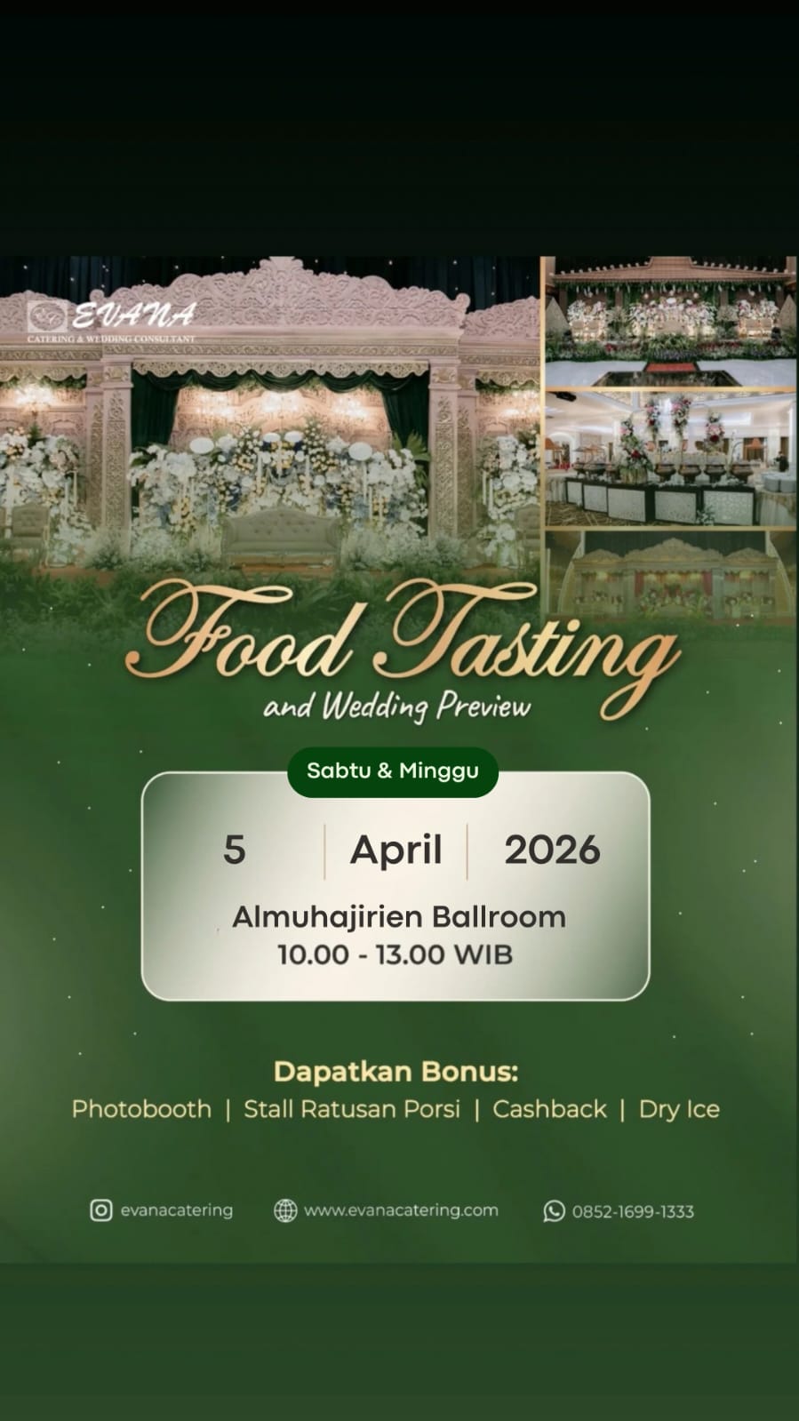 Perjalanan kami sejak 2005 Evana Catering adalah perusahaan jasa wedding package didukung oleh sejumlah tenaga ahli dan profesional serta peralatan dan armada lengkap dan prima, Evana catering dipercaya menangani banyak layanan pesta pernikahan, seminar, ulang tahun dan kegiatan sosial keagamaan serta kegiatan pada event – event penting lainnya. Evana catering terdepan berinovasi dan mencari hal baru dalam penyajian menu makanan dan selalu memperbarui mulai dari perencanaan sampai penataan dekorasi & tata rias profesional demi kepuasan pelanggan, Abadikan hari bersejarah Anda bersama Evana Catering.
